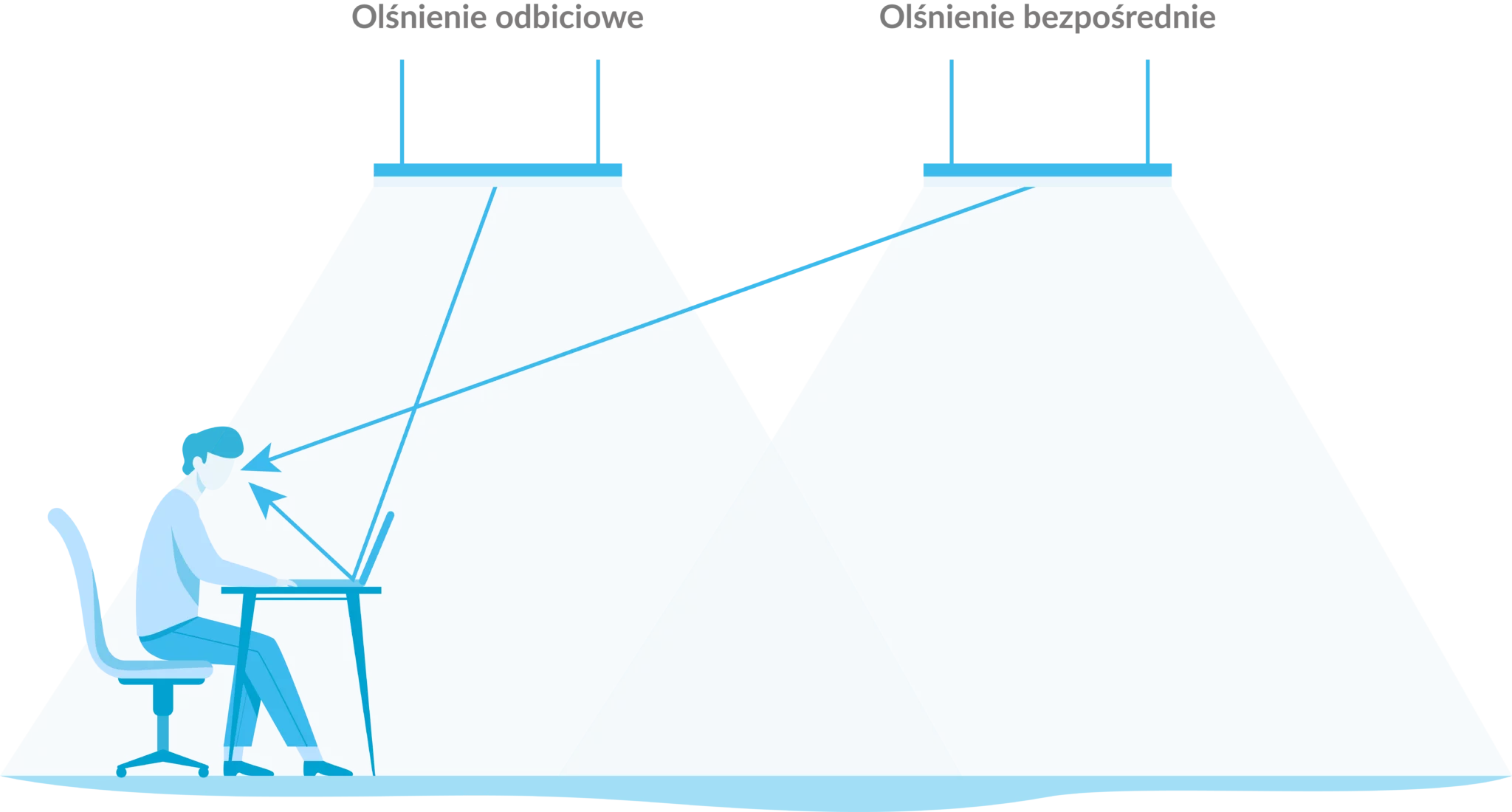 Oświetlenie miejsc pracy przede wszystkim powinno być dobrane do czynności wykonywanych w danych obszarach. Należy o tym pamiętać już podczas projektowania instalacji oświetleniowej. Efekt olśnienia może być zminimalizowany poprzez stosowanie kilku zasad m.in.: