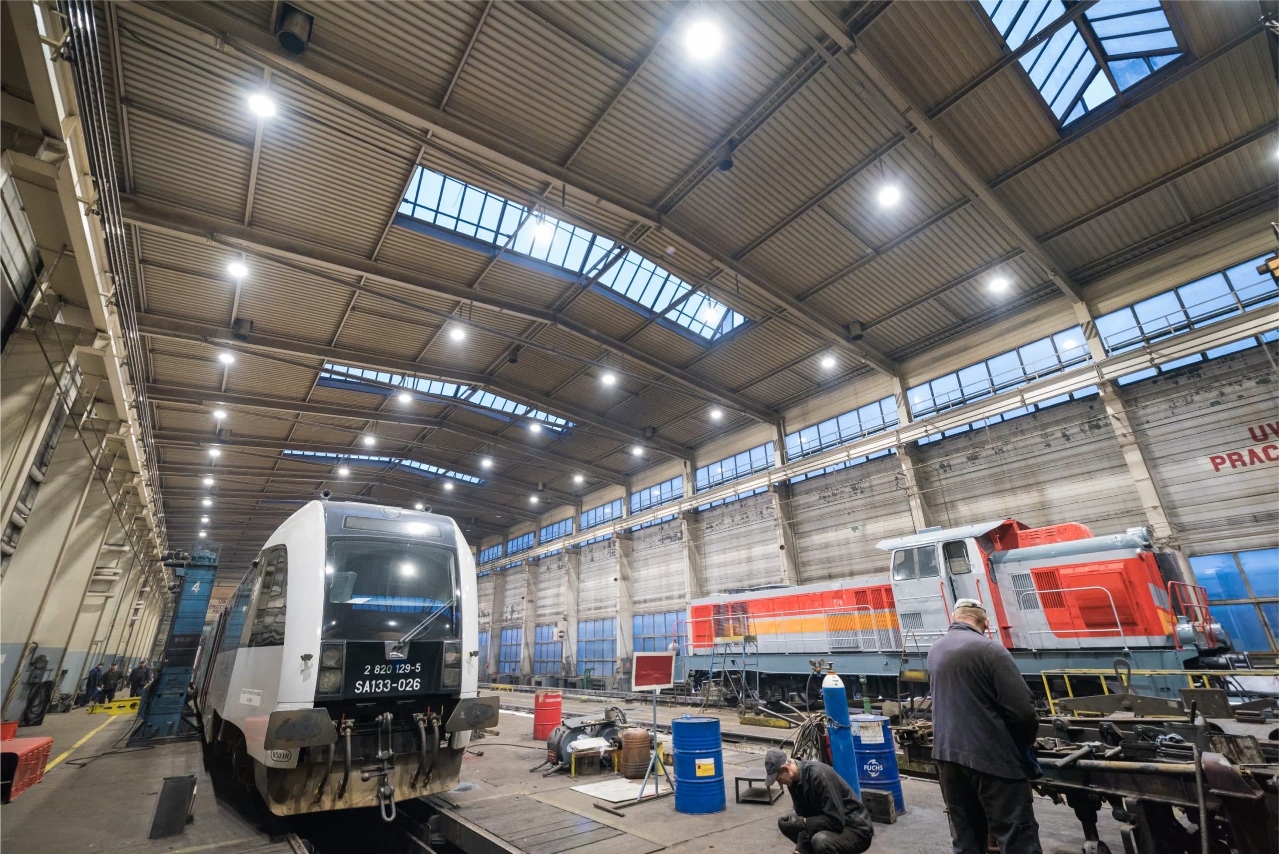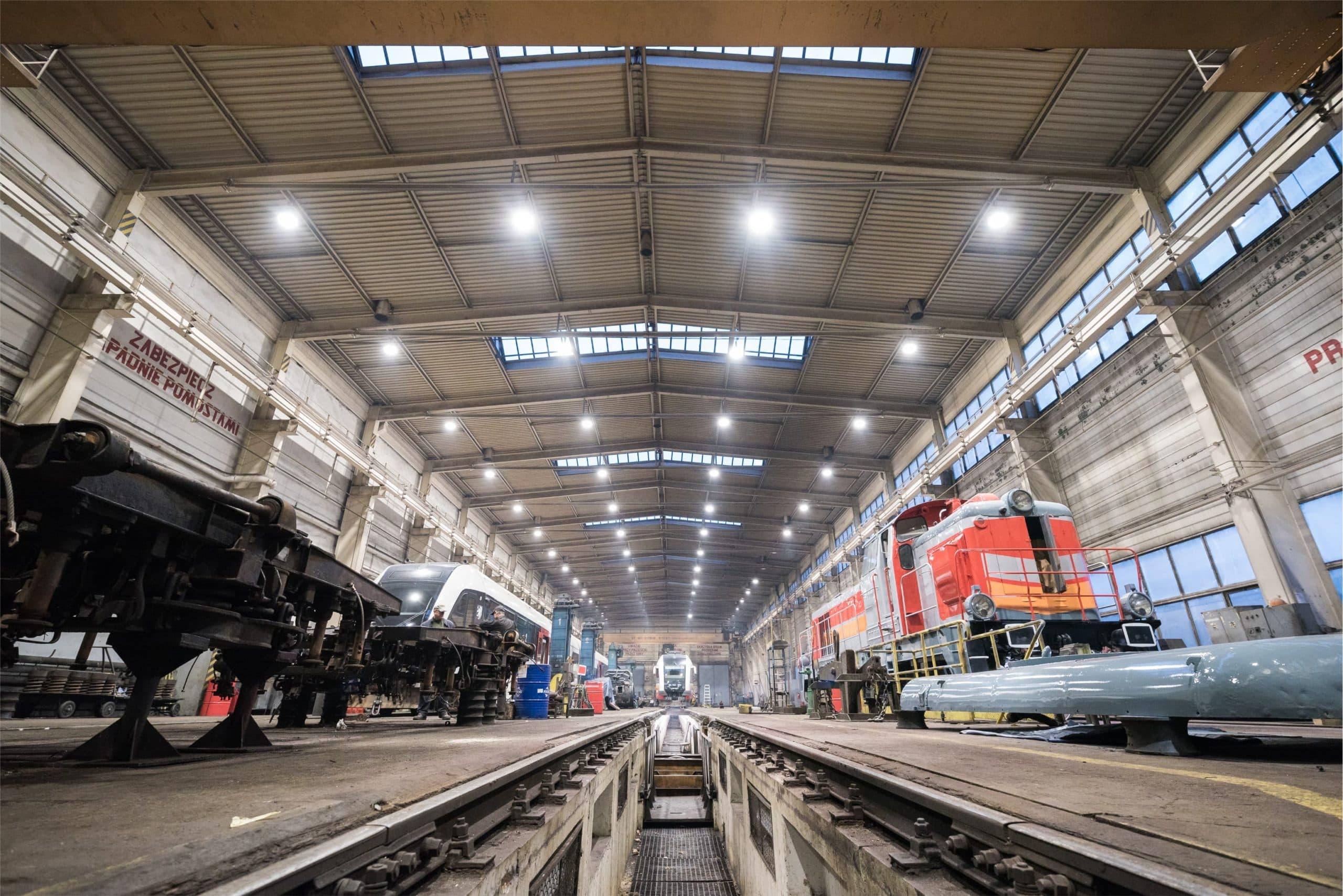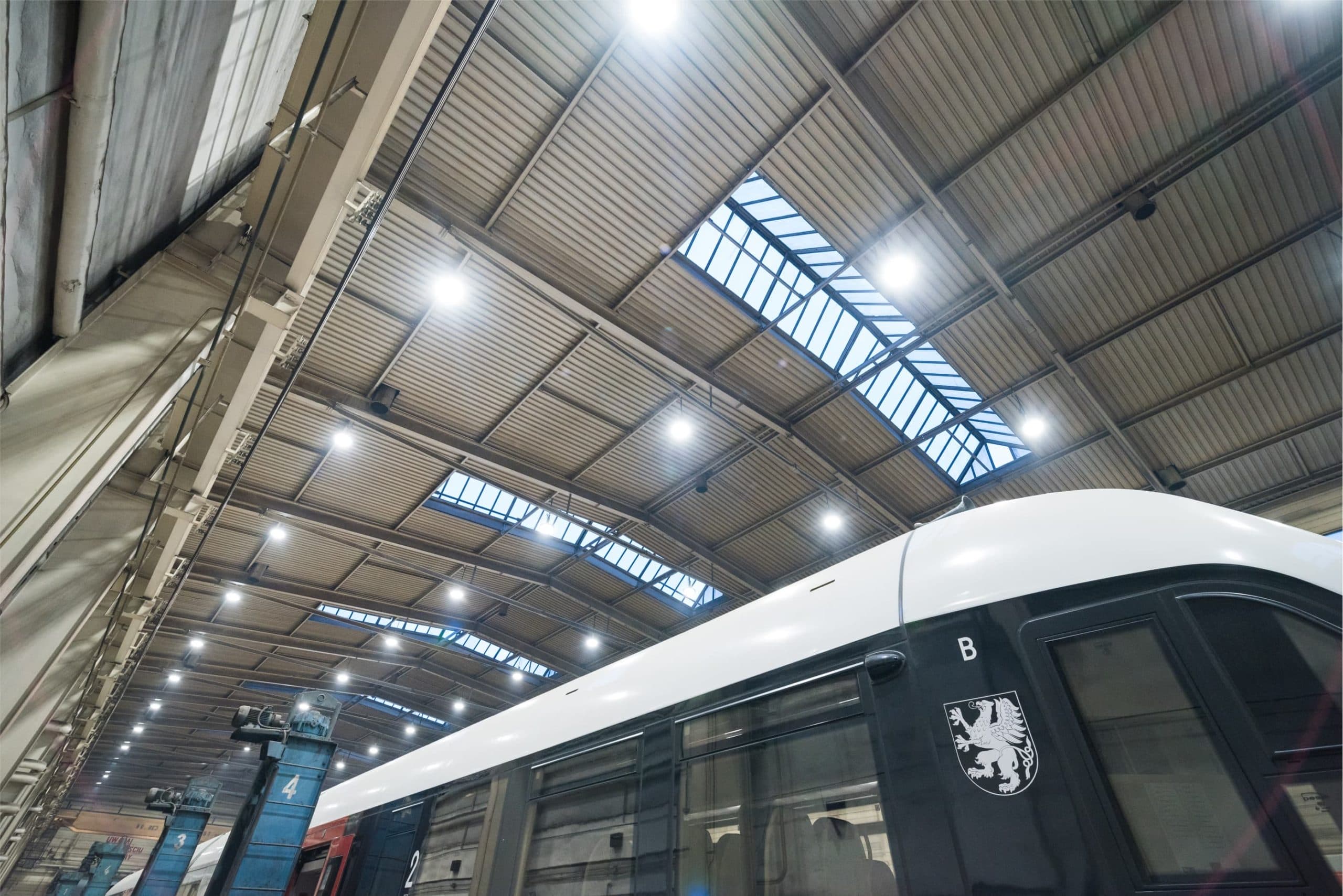 Nowe oświetlenie LED hali zakładu naprawy pojazdów kolejowych wysokiej na 16 m wygenerowało oszczędność energii na poziomie 70%, a inwestycja w wymianę oświetlenia zwróci się w 1 rok.