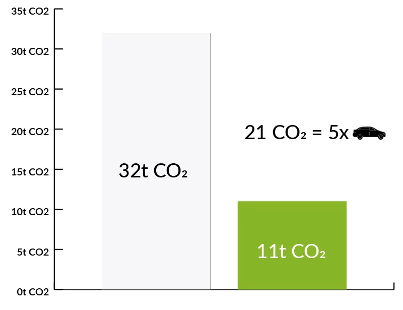zredukowanej emisji CO2 rocznie