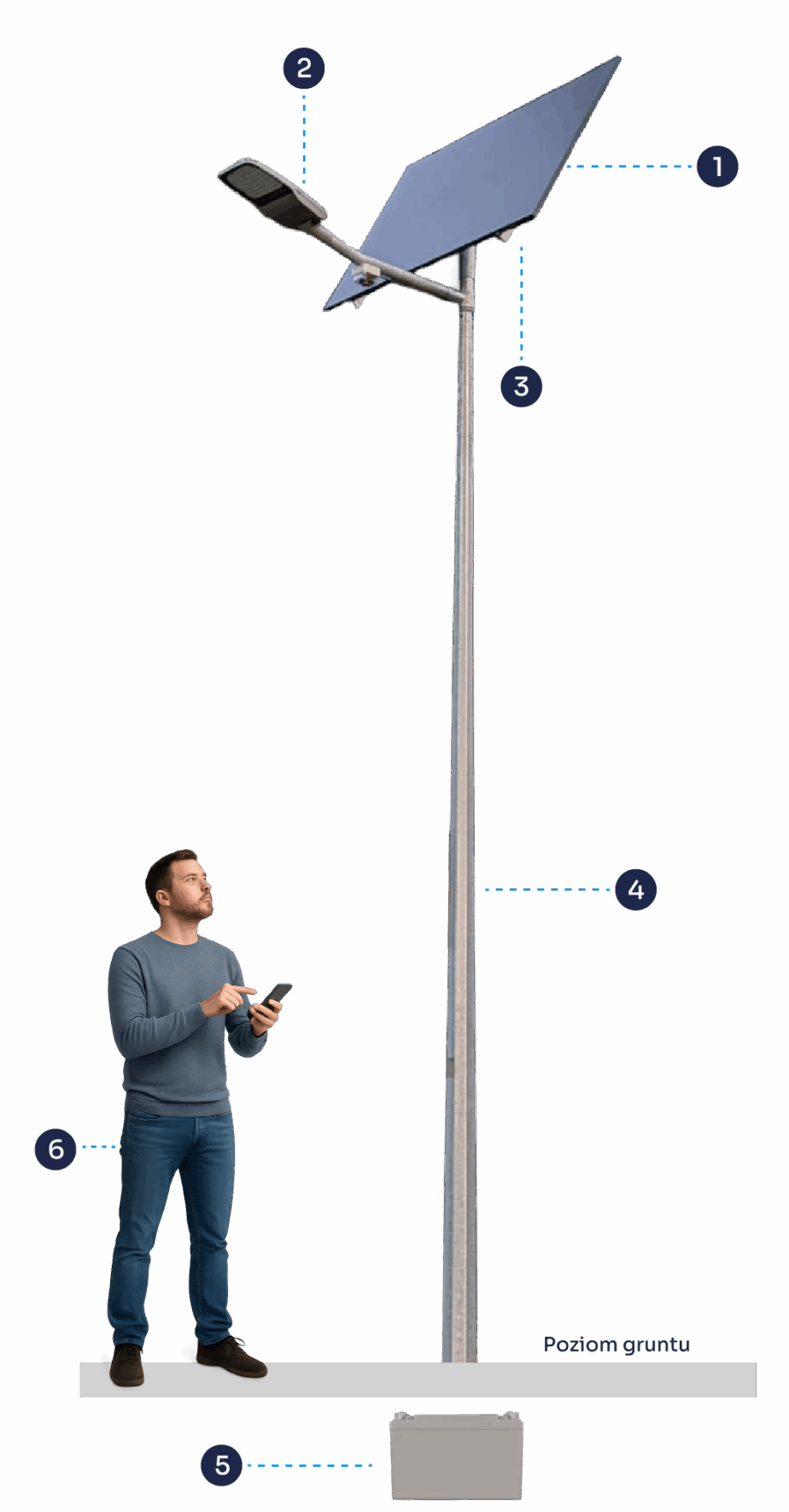 Ten słup oświetleniowy stanowi trwałą i estetyczną podstawę dla nowoczesnych rozwiązań w zakresie oświetlenia ulicznego i systemów solarnych – idealny dla projektów Smart City, osiedli mieszkaniowych, parkingów czy terenów przemysłowych.