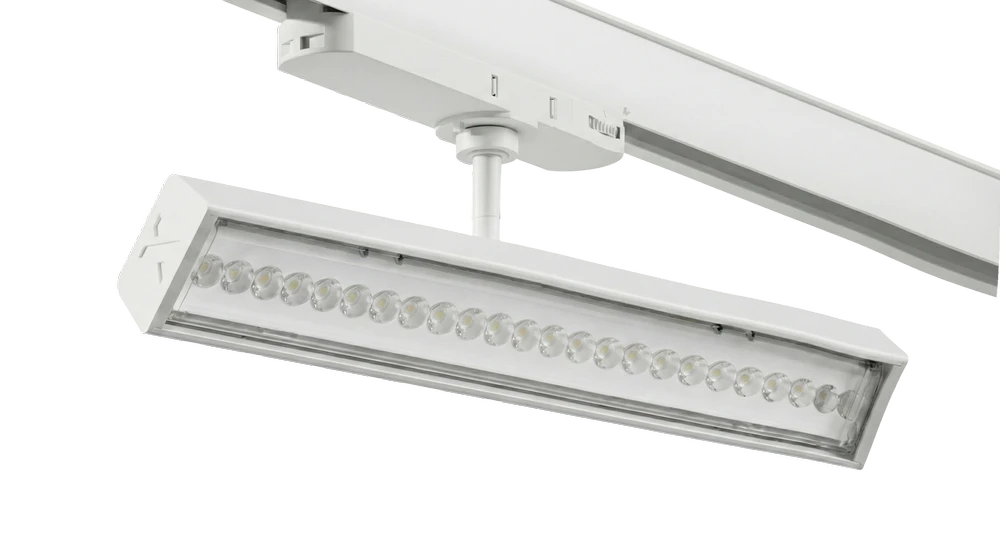 Estetyka oprawy, dostępnej w kolorze białym lub czarnym, doskonale wpisuje się w nowoczesne wnętrza komercyjne. Dzięki szerokiemu wyborowi optyki (soczewki PC FX, PC HE, PC PF, PMMA), Lumitrack Spot pozwala na kreowanie atmosfery sprzyjającej zakupom. Wysoka jakość światła przyciąga wzrok klienta do towaru, a kompaktowa obudowa nie dominuje nad wystrojem sklepu.